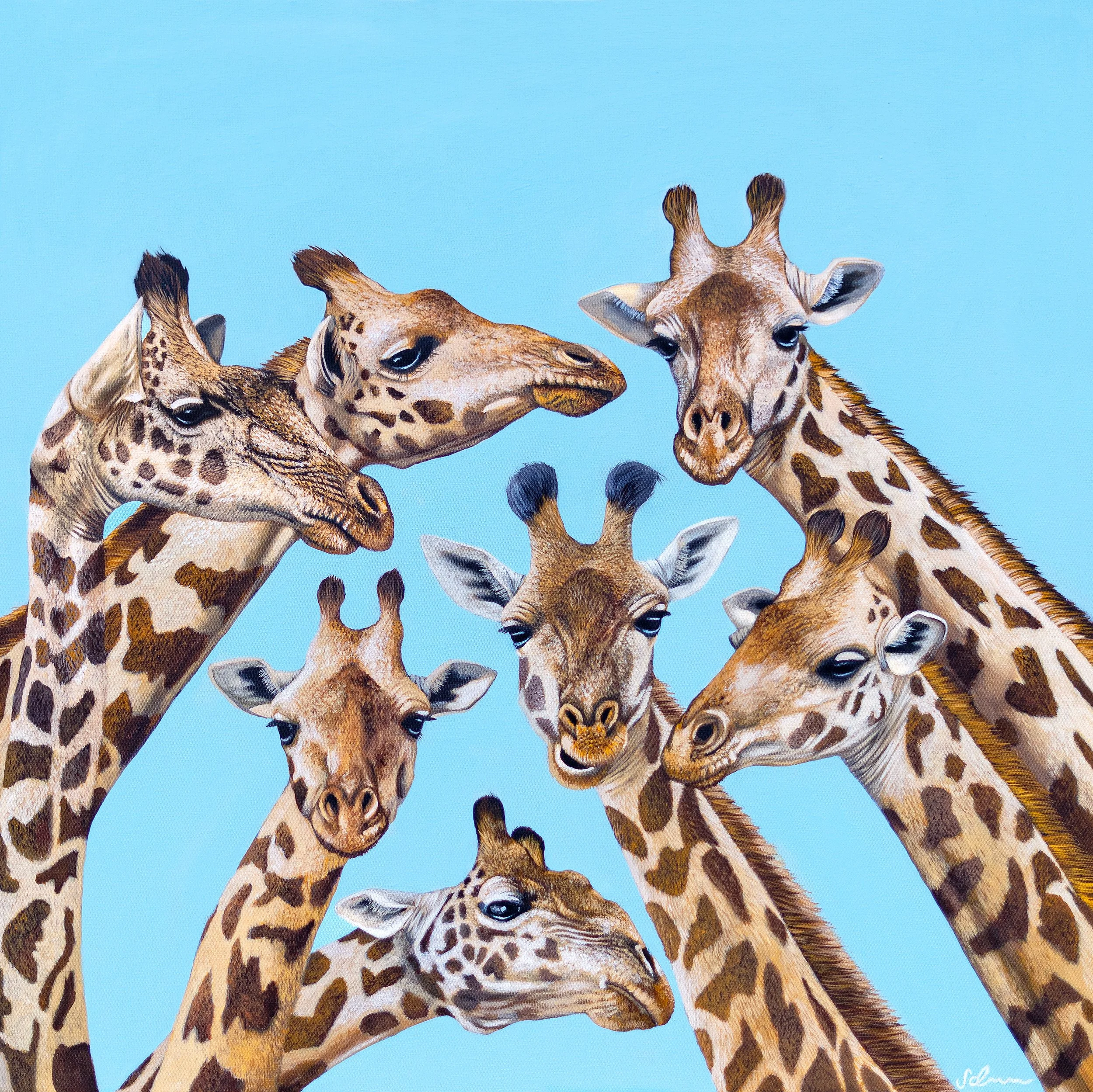 Green’s second piece in The Natural Order series, Think Tank, depicts a tower of giraffes interacting.